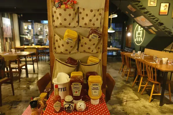 柱子上用點點不織布打造的醬料區,走個居家日雜風。