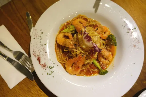 番茄辣味鮮蝦義大利麵算是中規中矩,沒到吮指回味的地步啦;