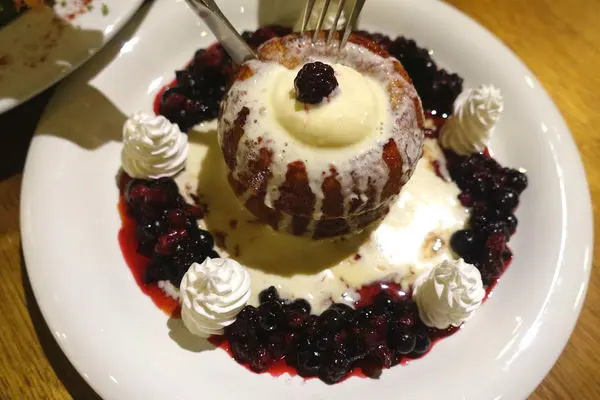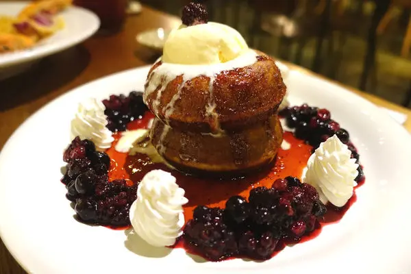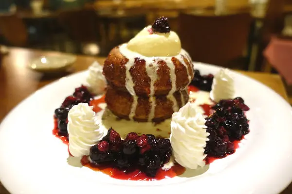 酸酸甜甜的野莓更讓可能會甜膩的鬆餅補上層次哩