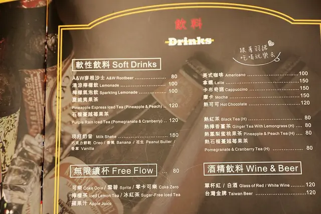 零卡可樂、可樂、熱紅茶、熱檸香薑茶、熱鳳梨蜜桃果茶、熱石榴蔓越梅果茶