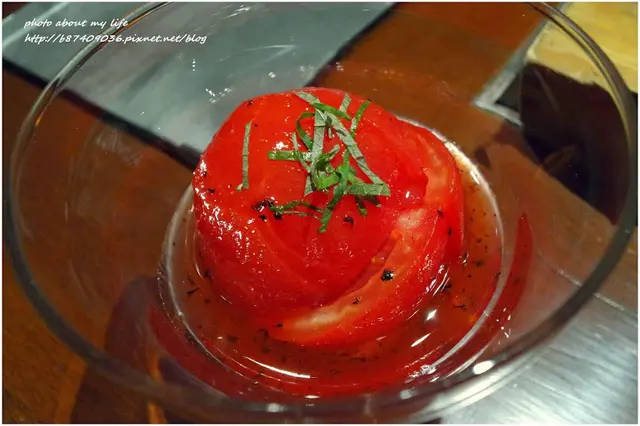 餐前先來顆梅漬番茄開味 不是小蕃茄而是整顆大蕃茄🍅食量小的話吃完這顆不只開胃還有飽足感XDDD