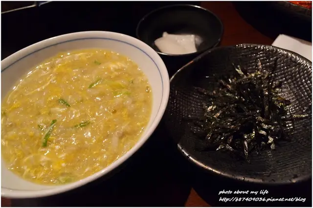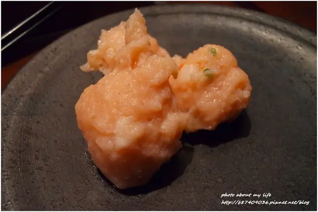 旁邊還有附蘿蔔泥和蔥花 橘紅色的蘿蔔泥乍看還以為是明太子