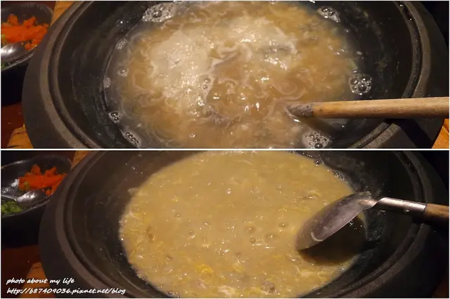 高湯裡除了昆布還有龍蝦、海鮮、青菜的精華 沸騰後米粥越煮越稠 鮮(鹹)味也跟著越來越濃~~~