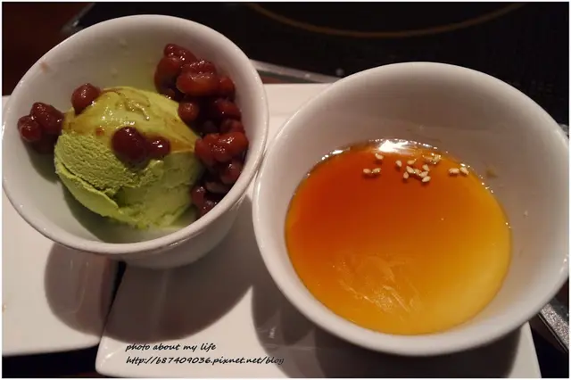 最後的甜點有2種 黑糖豆花和抹茶冰淇淋+蜜紅豆 抹茶冰淇淋比較沒fu 熟悉的味道是火鍋店會吃到的品牌