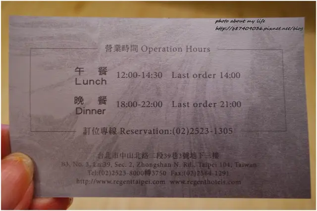 地址 台北市中山北路2段39巷3號(晶華酒店)B3樓(近捷運中山站)