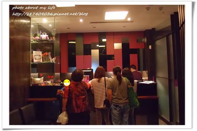 一出電梯就會看到小小的接待櫃台 人多時候位和結帳的客人就會像這樣擠成一團