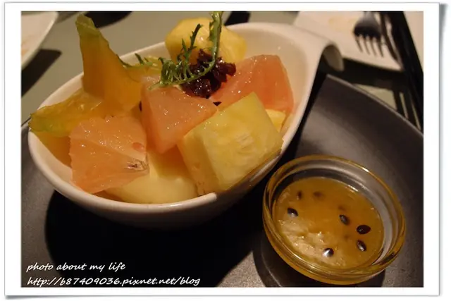 特別的是帶點稠度的百香果醬 酸酸甜甜的確很開胃 但就是一般般的水果切片啦(笑)