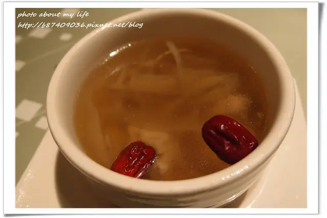 清澈的湯頭聞起來有濃濃蔘香和牛蒡味 不油不膩又清爽 裡頭還有淡淡的紅棗甜 好喝