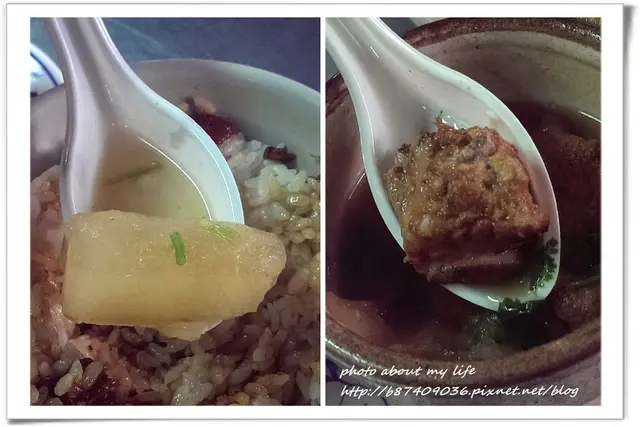 噹噹~傳說中的排隊美食上桌嚕!滷肉飯(25元)+排骨酥(45元)有著菜市場的傳統fu 超懷念~~~