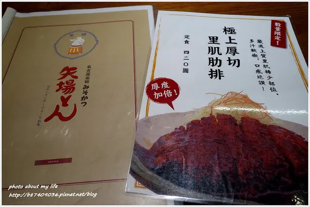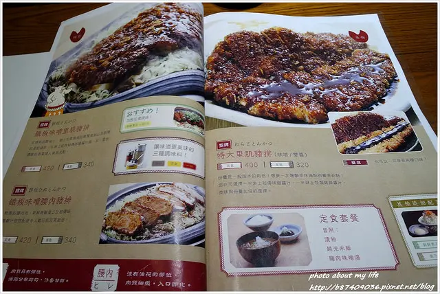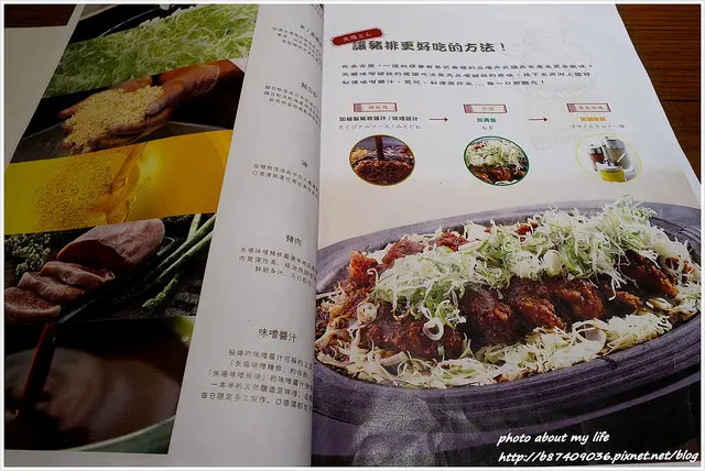 旁邊還解說讓美味豬排更好吃的方法是先將豬排/味噌醬汁→中間加青蔥→最後再加調味料(黃芥末)