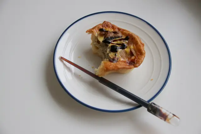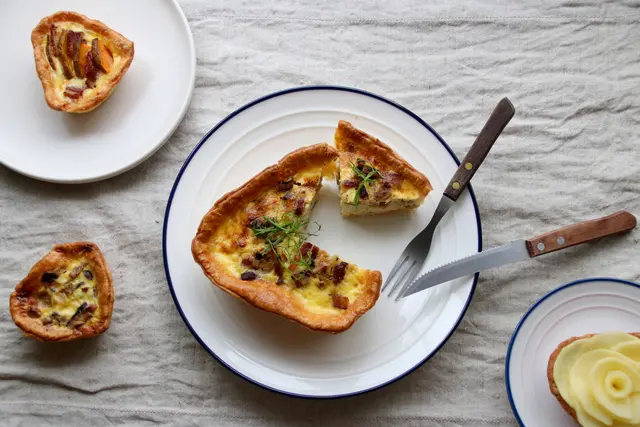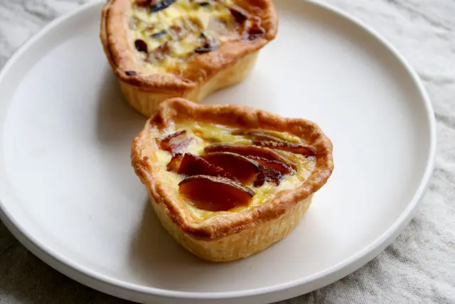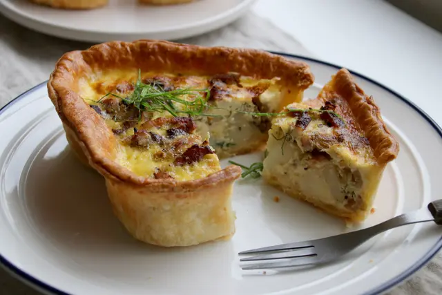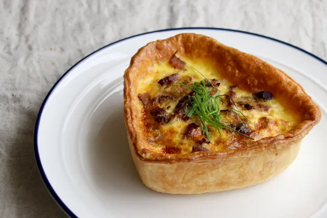 以手打兩種不同派皮。鹹派食用前需以烤箱加熱,