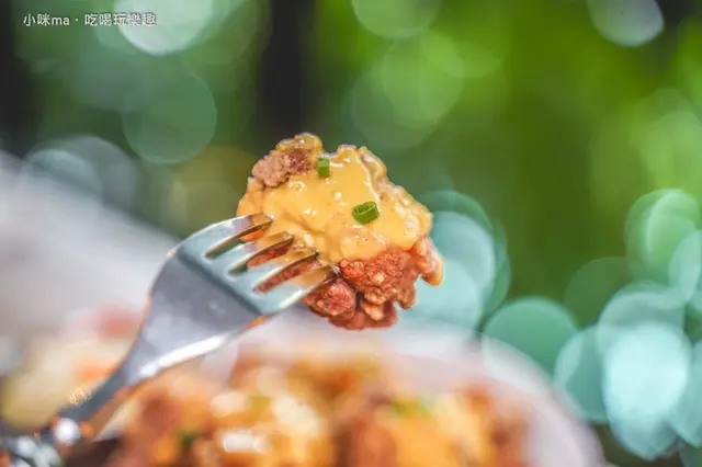 天兒~炸雞會讓我再三回味的就是這一道鹹蛋黃炸雞,沒錯~上面淋的是特製鹹蛋黃醬