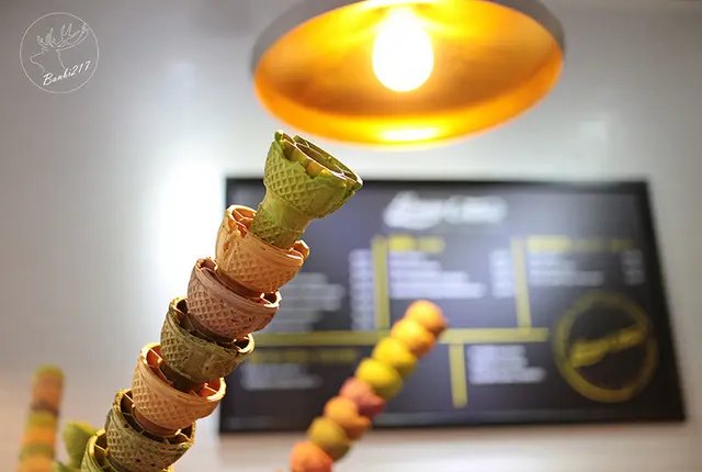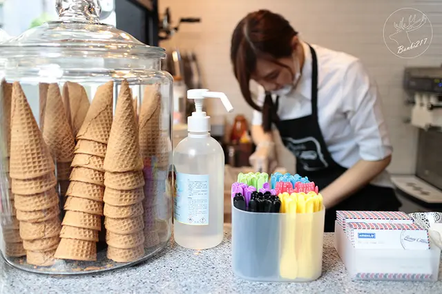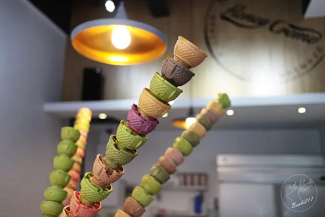 店內也將許多色彩鮮艷的甜筒餅乾杯作為擺飾。