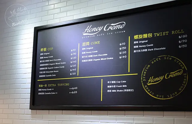 引進韓國蜂巢冰淇淋概念的Honey creme,為牛奶香氣與口感皆為濃郁的霜淇淋搭配香甜的蜂巢與蜂蜜。