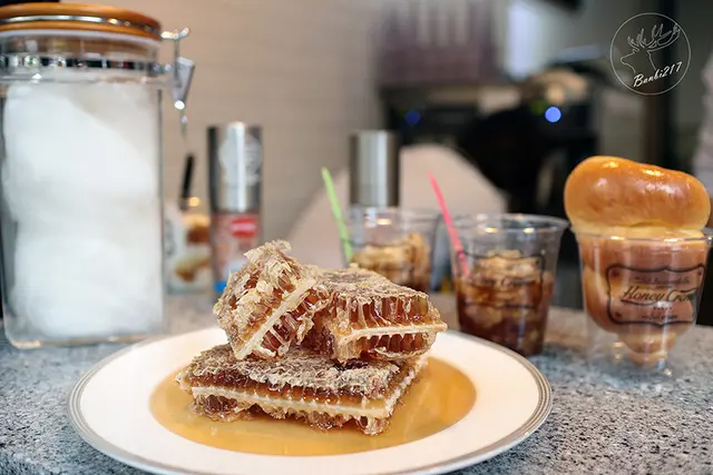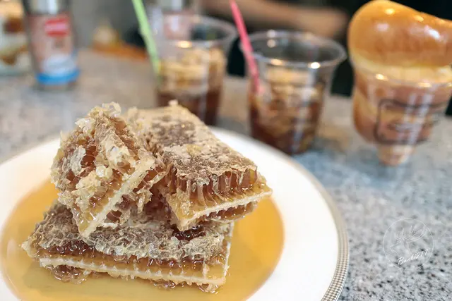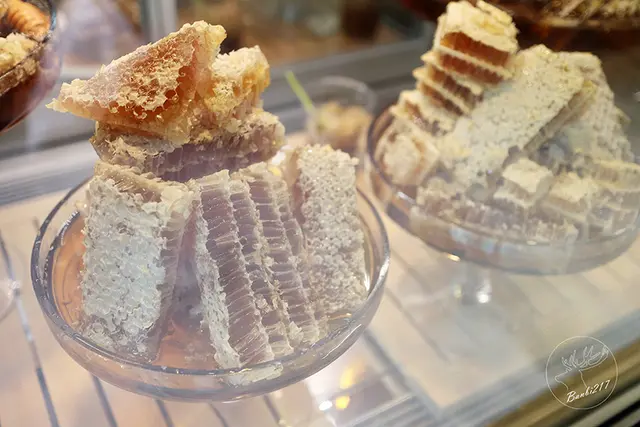 既然以蜂巢霜淇淋做為賣點,店內擺放了許多的蜂巢。