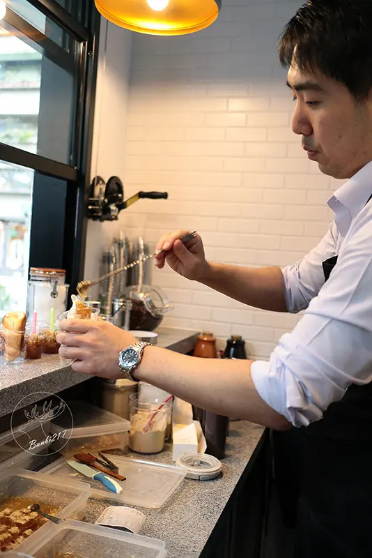 店員正專注地製作著霜淇淋,而且服務也很親切。