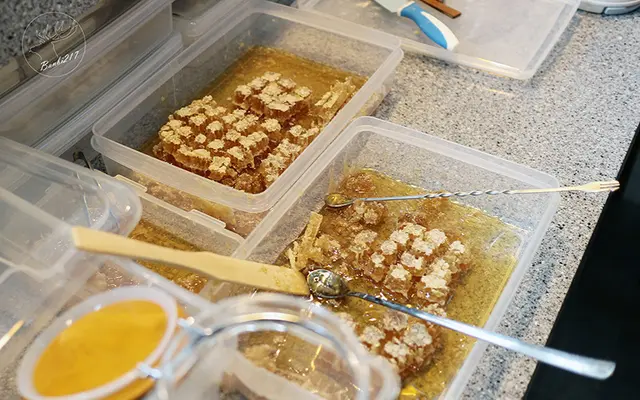 這些切成小塊狀的蜂巢便是用於放在霜淇淋上頭。
