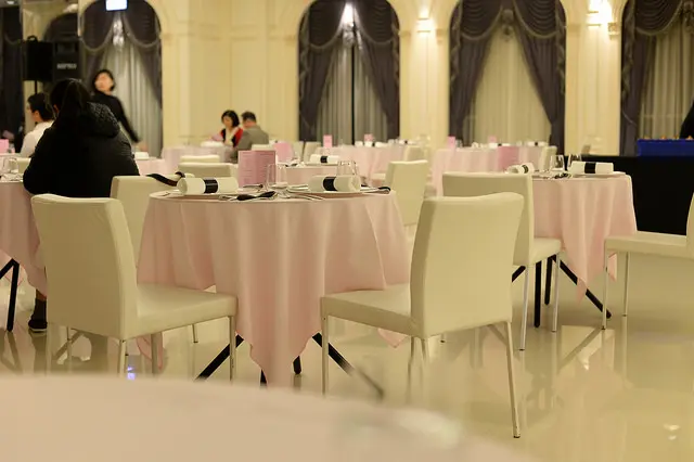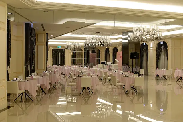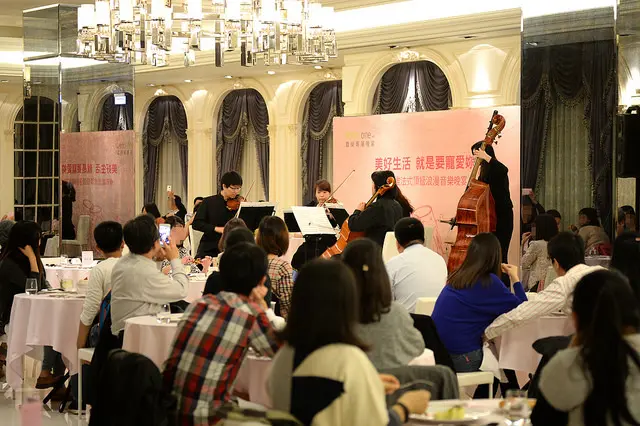 優雅的樂聲裝飾著像吃喜酒不怎麼稱頭的場地,