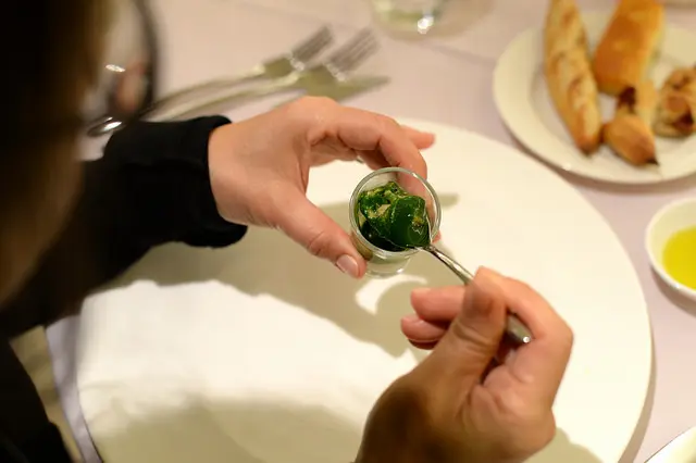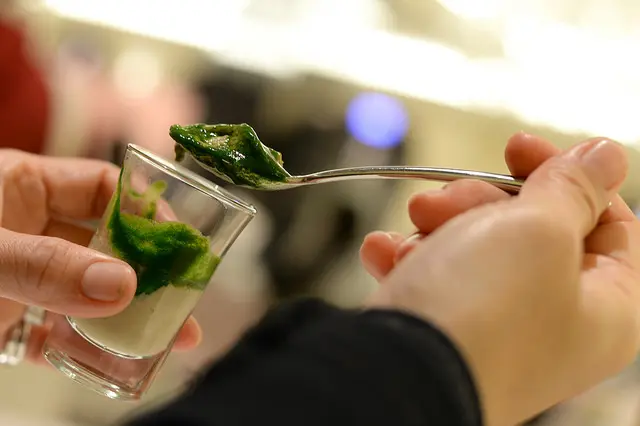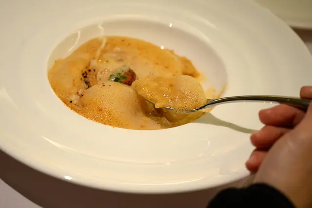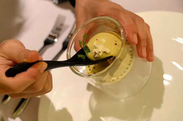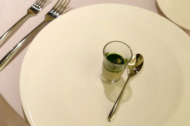 一小匙(杯子很小,匙也大不了),先是波菜香後是蘑菇香,慕絲般的綿細潤滑,