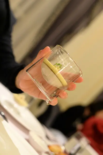 然後送上一只小玻璃杯,服務生說是前菜 ←沒在菜單上的招待來著