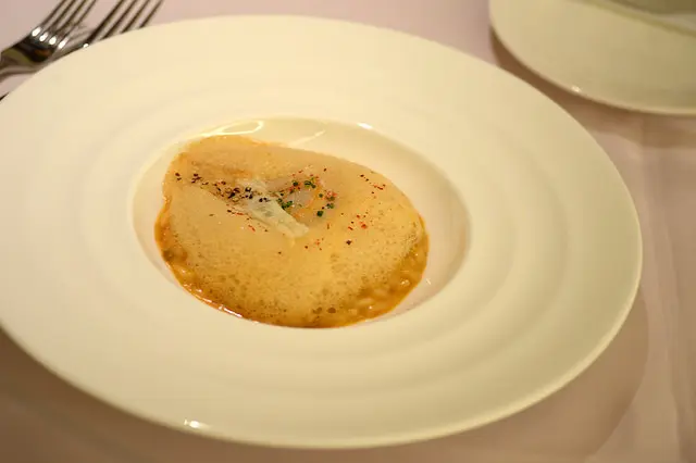 上層是玉米、下層是雞湯,中間薄薄一層是鴨肝慕絲