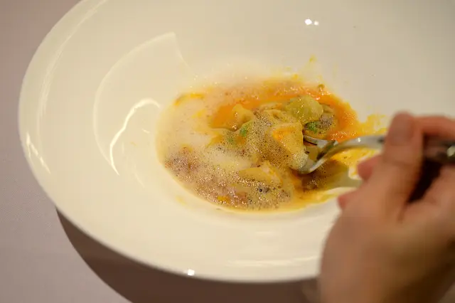 香氣→洋蔥泡泡、甜味→南瓜、鹹味→鴨肉