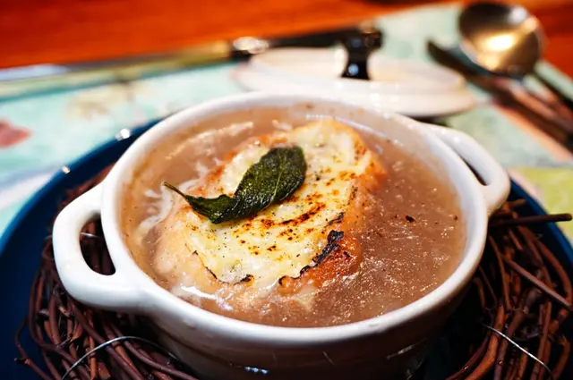 第一個是含有牛肉基底的美式洋蔥濃湯,