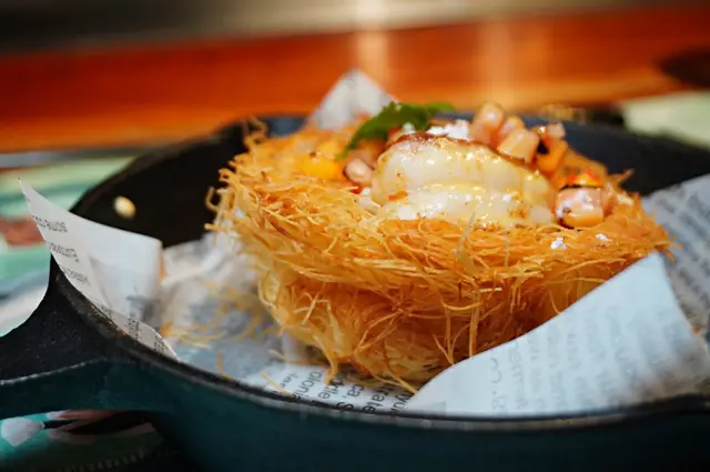 主廚用鳥巢表達重新開始, 模仿塔克皮酥脆,