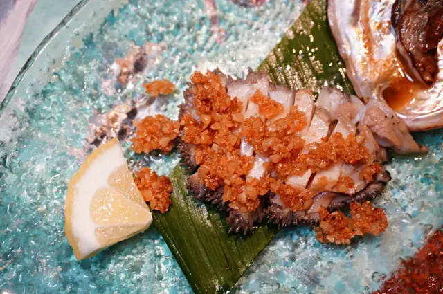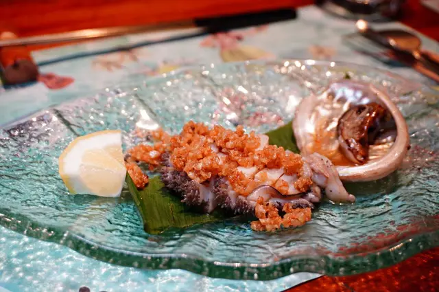 建議先品嚐吃起來濃郁鮑魚內臟,