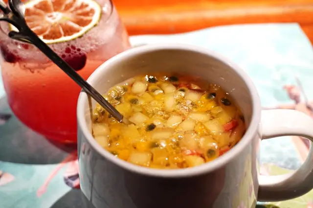 同樣是無咖啡因的水果茶採用新鮮水果自助,