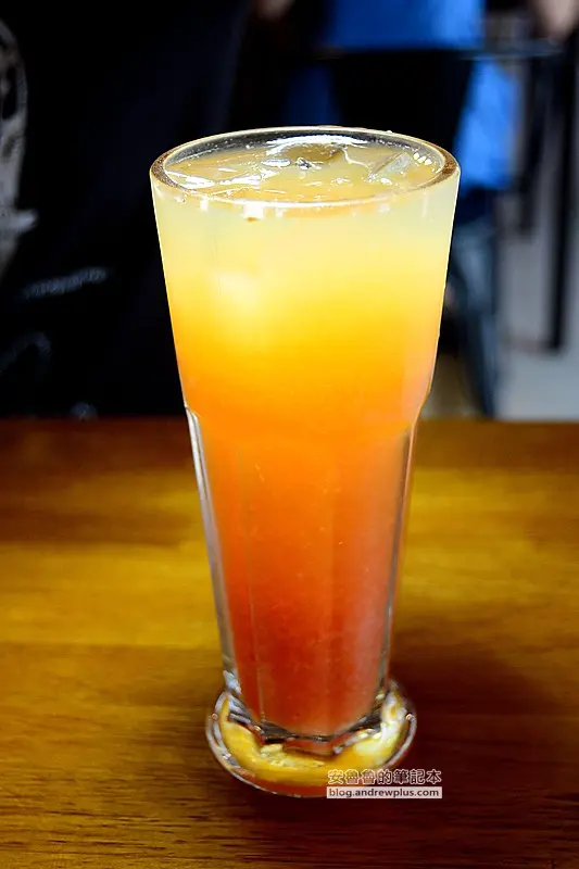 少量冰塊,甜度適中,水果香氣中隱約透露著些許的花香,喝起來順口無澀味。天堂紅茶帶點甘味,喝起來很舒服,再加上葡萄柚的香氣,外觀顏色又很討喜,真是色香味俱全的一杯果汁!