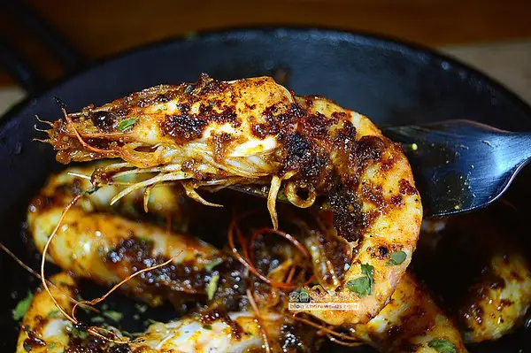 七隻去殼大蝦,加上特殊醬汁,入口Q彈的口感,鮮甜的蝦肉混合帶有類似墨西哥辣椒香氣的鹹辣醬汁,對比大家熟知的紐奧良風味,路易斯安納風味也是美國很普遍的一種料理味道,主要的調味是卡薑粉,成分是辣椒粉、甜椒粉、義大利香草、醋和蒜,超市裡面也能夠買到卡薑粉的醬汁。