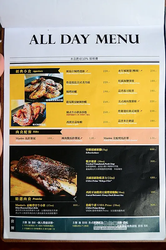 ▼前一陣子很流行的低溫烹調法,MASTRO 的牛排也用一樣的料理方法,可以讓肉的中心保持粉嫩的狀態,不敢吃生的客人也能品嘗牛肉柔軟的口感,但是這樣的方法對於愛吃三分熟牛排的安魯魯來說,牛肉的鮮甜味就流失了一大半,所以我們就突然想起了店家其實有名的是戰斧豬排,下次再來訪還是點豬排好了!