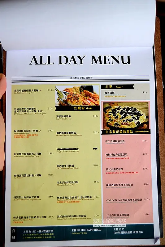 義大利麵、燉飯、排餐、早午餐、咖啡,酒類飲品等