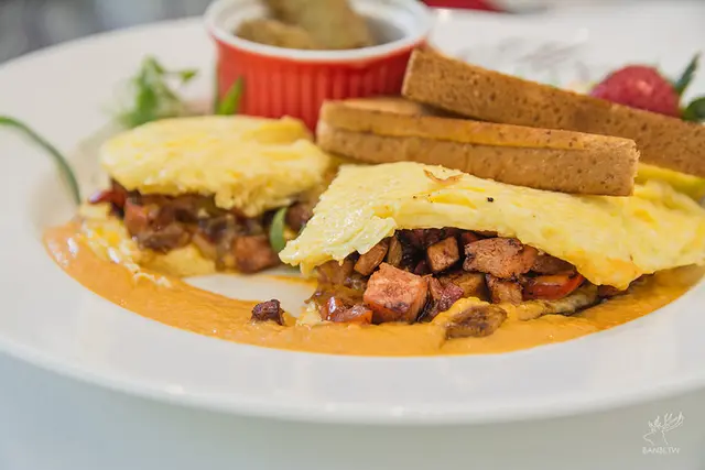 餐廳空間挑高、明亮,餐點主打、早午餐的歐姆蛋捲與班尼迪客蛋,還有特殊的Loco Moco醬肉汁湯飯。