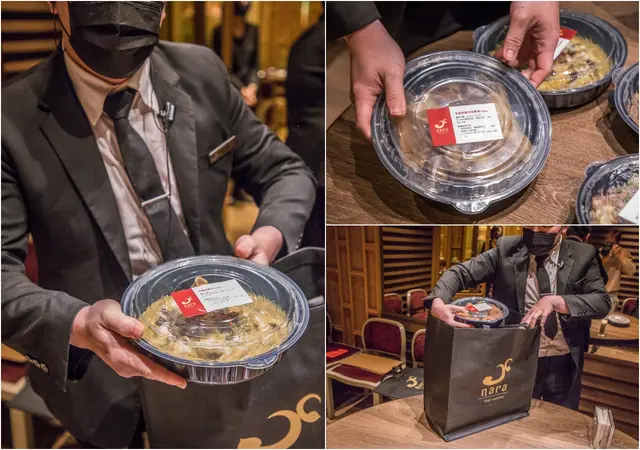 這次我們是選離我們家最近的NARA Thai Cuisine台北統一時代店,就在統一時代百貨內,鄰近北捷市政府捷運站超方便的,預約好的時間到店,取貨時只要告知取餐姓名跟電話號碼即可,店員會引導取貨區,服務人員會將訂購的年菜擺在桌上,先一一確認過餐點才裝袋