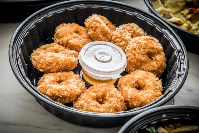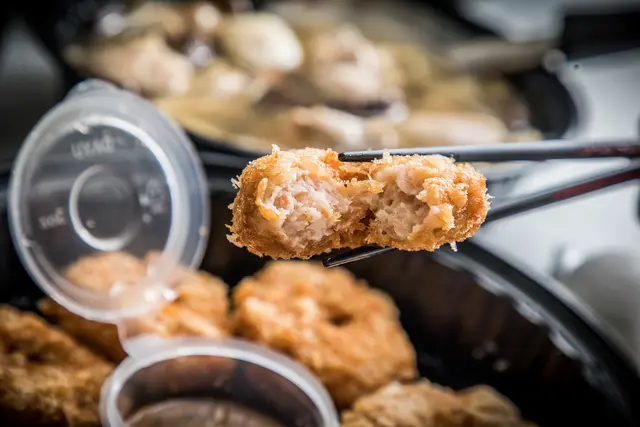 金錢蝦餅,份量超大!蝦餅尺寸也沒在小氣!尺寸厚度都超級驚人,感覺吃一個就很飽了,用料超紮實,每一口都能吃到飽滿的蝦肉,外皮也很是酥脆不油膩,吃的時候可以沾上梅子沾醬,清爽酸香,不僅去除炸物吃多的油膩感,酸甜有層次的梅香更能誘發食慾
