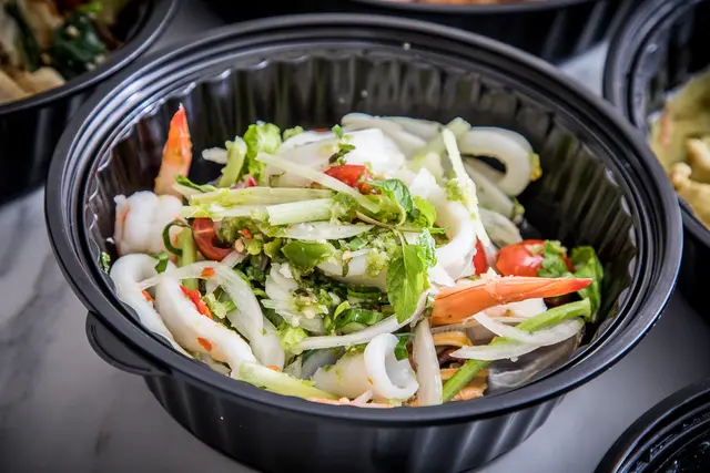 鴻兔大展泰式年菜八菜一湯:金錢蝦餅(份量加大)/酸辣海鮮沙拉/兔攜好運蝦醬彩頭糕(年菜限定)/兔發橫財軟殼蟹XO醬米糕(年菜限定)/檸檬魚/打拋豬(份量加倍)/綠咖哩雞肉(份量加倍)/什錦時蔬(份量加倍)/兔歲圓滿冬菇雞湯(年菜限定)