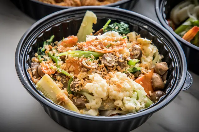 NARA Thai Cuisine鴻兔大展泰式年菜總共八菜一湯,相當豐盛,料理都是新鮮現做的,不是冷凍年菜,而且份量都有加大,回家就可以直接享用,如果想要加熱也沒問題,每道菜的蓋子上都印有加熱方式,包裝盒微波爐直接加熱即可,不用再換容器唷