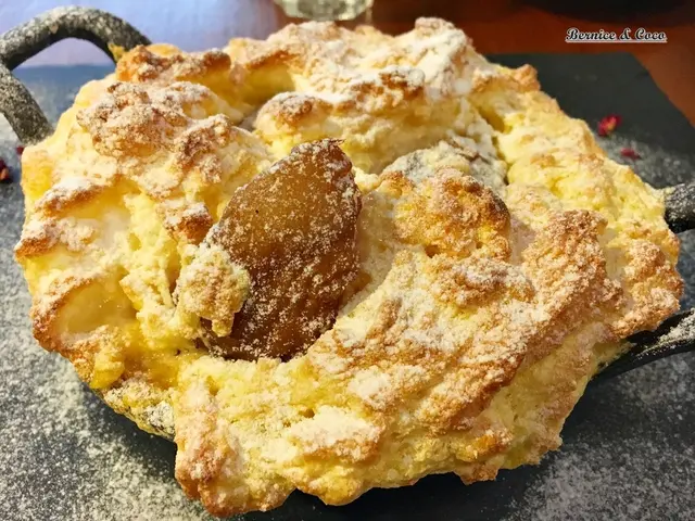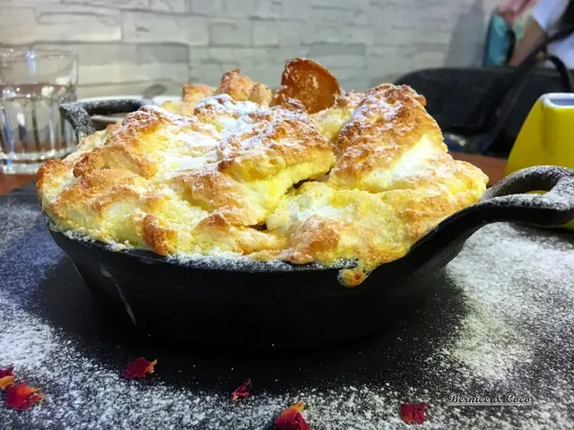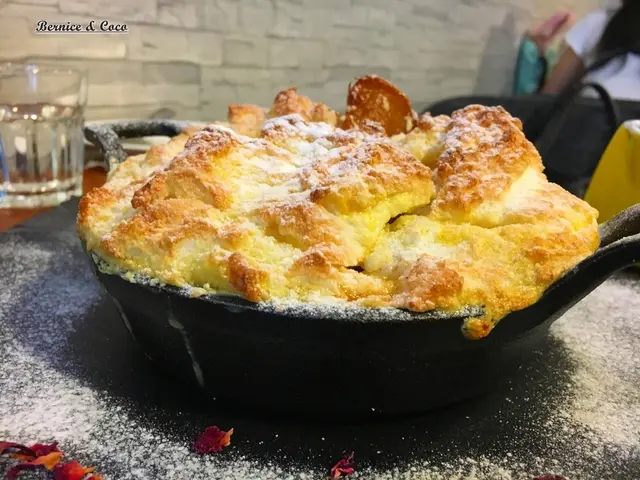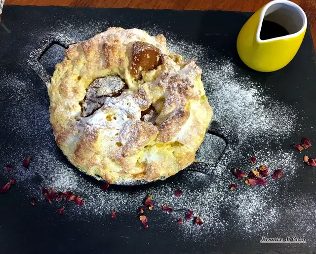酒漬水梨舒芙蕾以鐵鍋裝呈