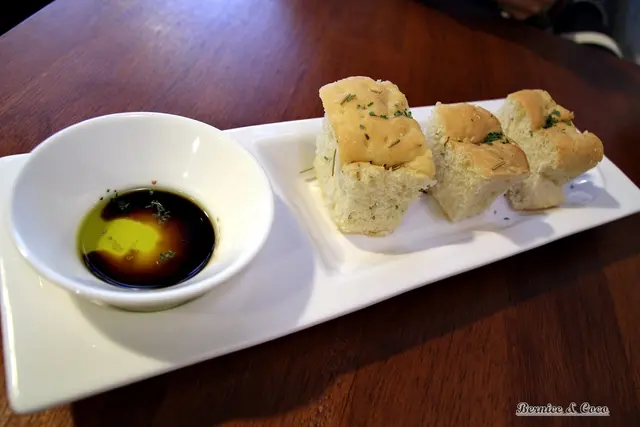 餐前麵包:是灑著香料的佛卡夏佐油醋醬
