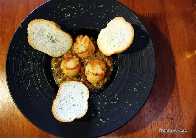 前菜:北海道生食級嫩煎干貝佐檸檬白酒奶油醬