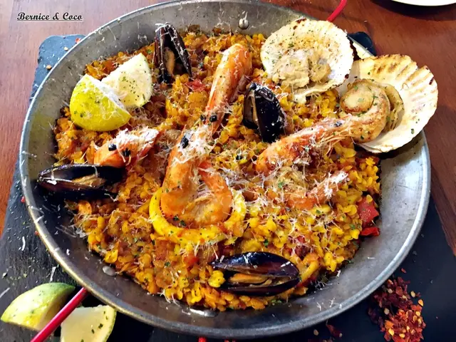 蝦子、孔雀蛤、扇貝、海鮮配料和番紅花與進口香料