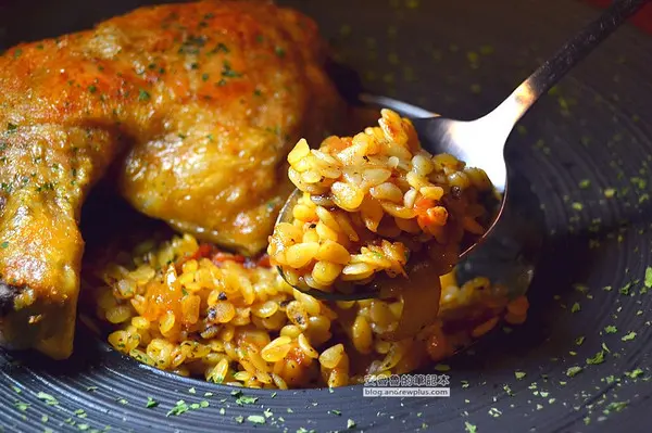 ▼米粒形狀的義大利麵代替米飯,混合洋蔥.番茄.磨菇,吃起來甜甜的,帶著的微酸番茄味,和雞肉拌在一起混合,一起食用就有美味加分的效果。有點像西方版的雞肉飯啊!