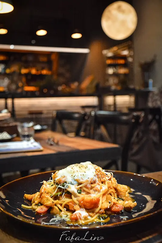 即使知道店內招牌是淡菜鍋,但兩個義大利麵愛好者還是聽著心底的慾望來決定。番茄醬汁大多都已均勻包覆著麵條,高聳的麵條看起來份量蠻大。