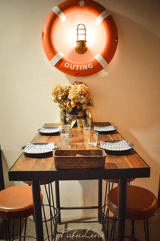 當中我最欣賞的是這一區工業風壁燈與救生圈,好比海港的燈塔碼頭,似乎象徵自家淡菜鍋的新鮮質量。