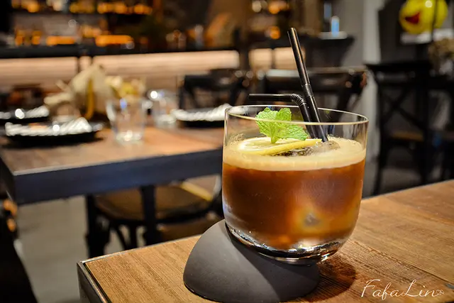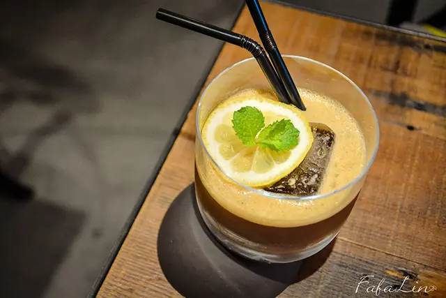 頂部泡沫薄薄一層但是泡沫蠻細密,裡頭放置大冰塊來預防過快地融化導致咖啡風味被稀釋,入口咖啡味道很香,接著是檸檬清新的氣息以及一點蜜甜味,不知道是蜂蜜還是什麼,當時忘記問,總體來說,很喜歡這杯。