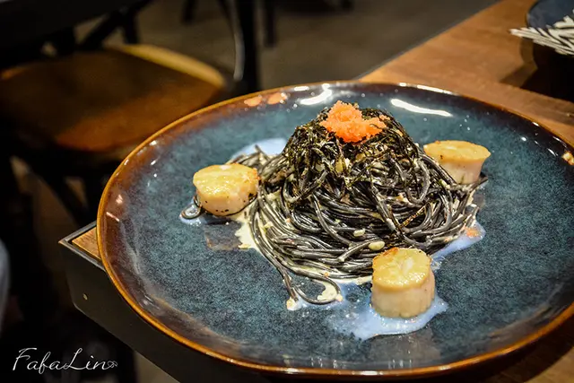 明太子奶油干貝墨魚麵 Grilled Scallop Mentaiko Cream Sauce NT$380