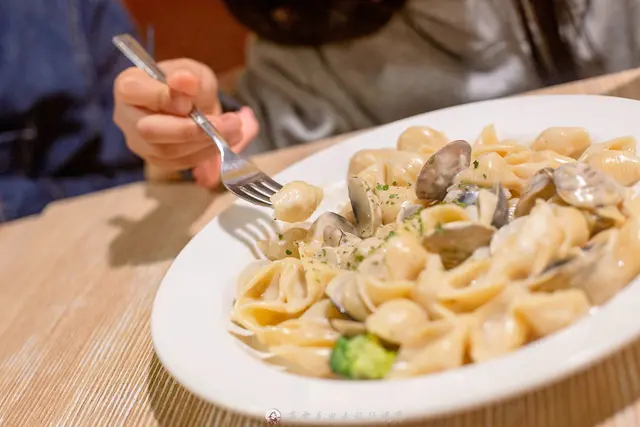因位小朋友喜歡吃貝殼麵,所以就把奶油蛤蜊麵改成貝殼麵,吃起來是比較有嚼勁一些,麵心感比較明顯,然後奶油香氣也很足,但不會太過讓人覺得吃起來偏膩,一樣收汁收的很好,就沒太多湯湯水水,重點是蛤蜊真的放得很多,這樣子才賣180元,加麵還不用錢,也太爽了吧!