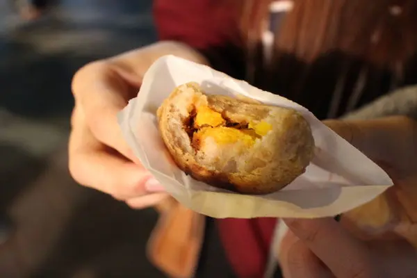 堆著像小山丘一樣的,一下就賣完了;像餅乾的那個裏頭會包著肉鬆跟蛋黃唷